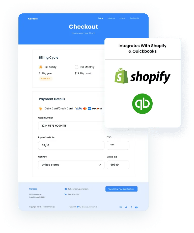 Easy-to-customize checkout forms let you start selling online in just minutes.
