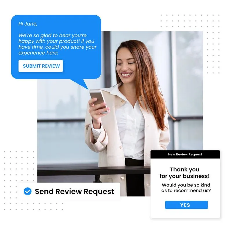Send automated review requests and turn every customer into your biggest fan. A simple text triggers requests, and soon you'll see reviews and referrals pouring in.